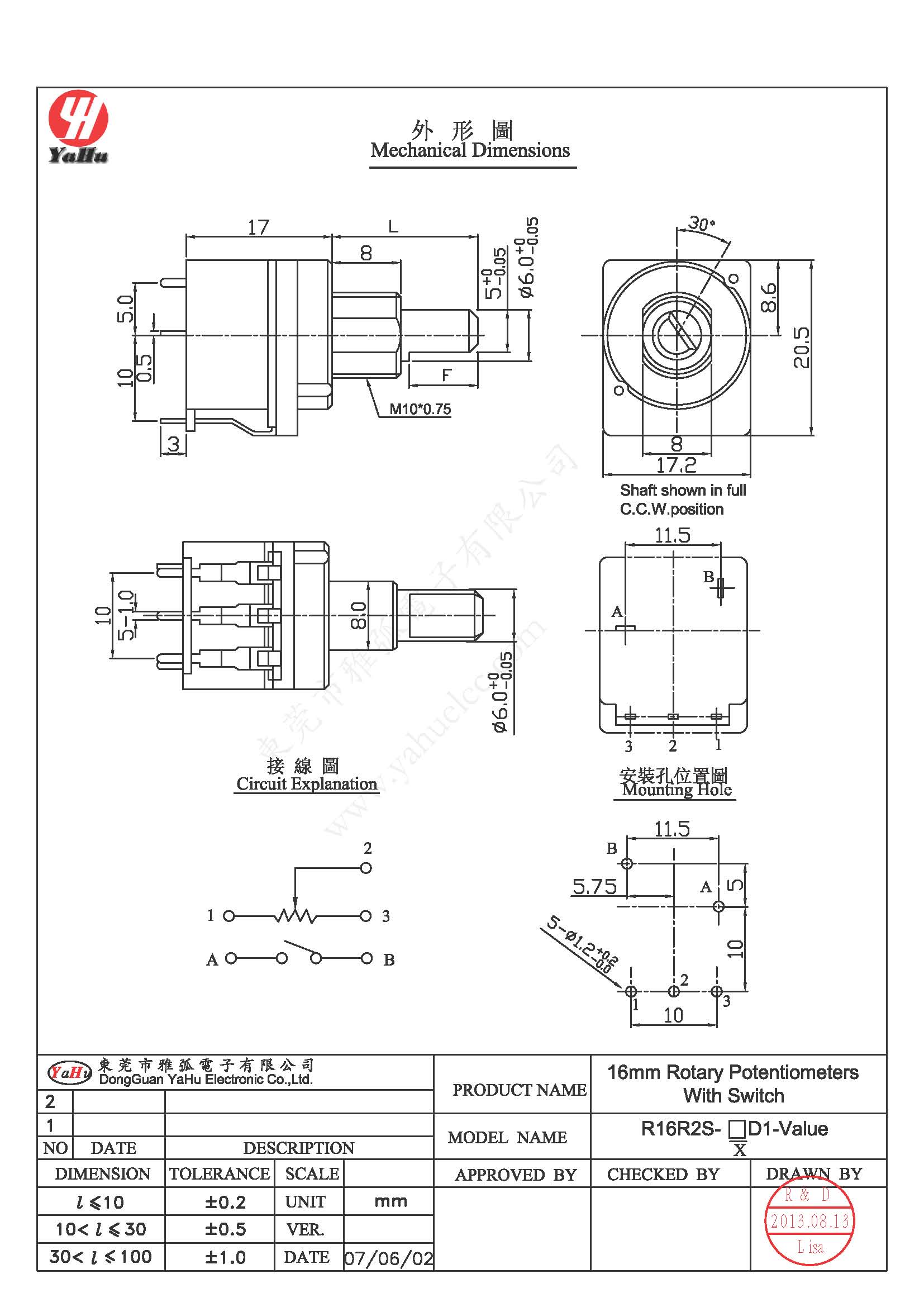 16mm 開關(guān)電位器(16mm Switch Potentiometers)